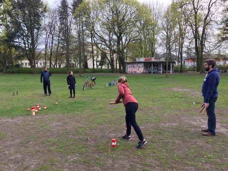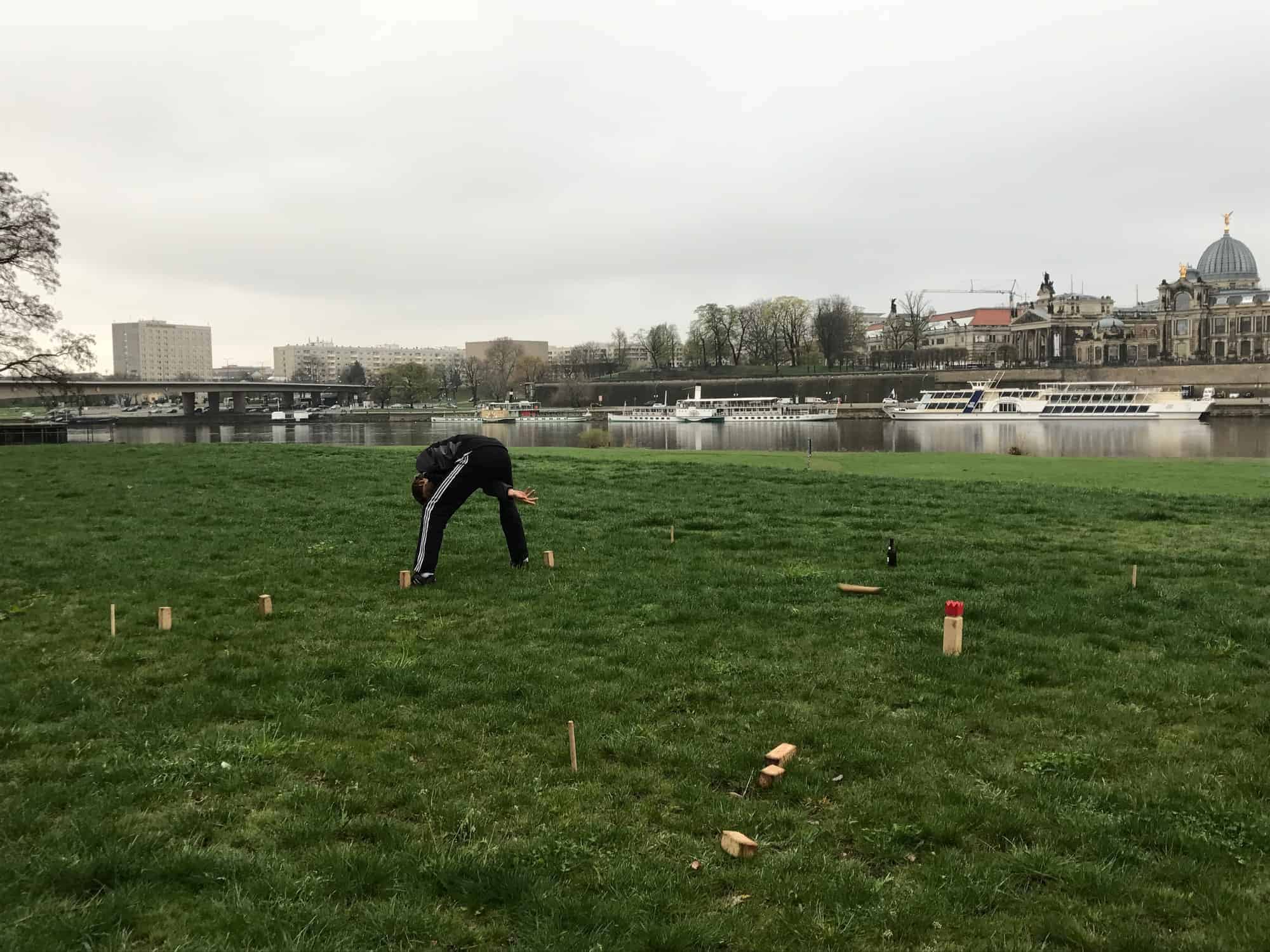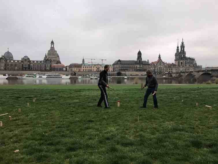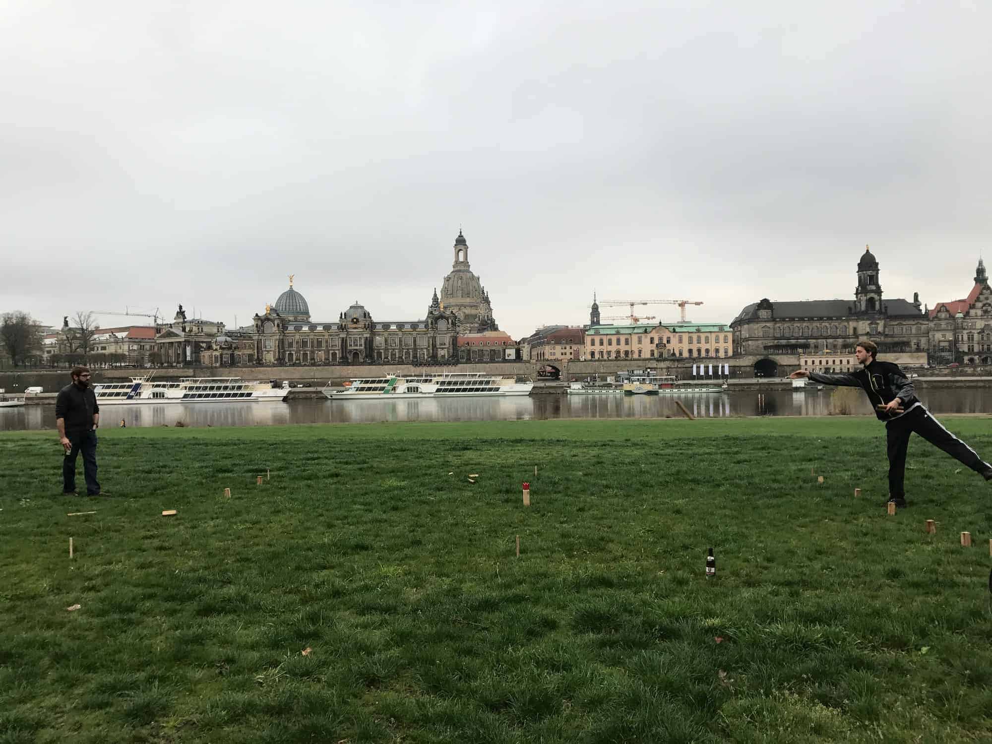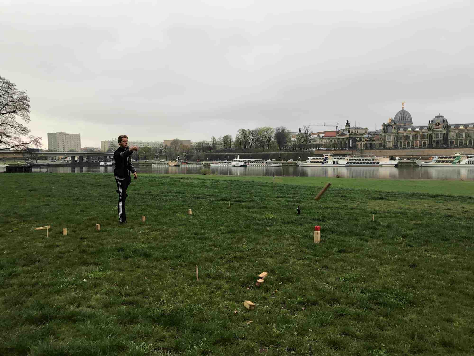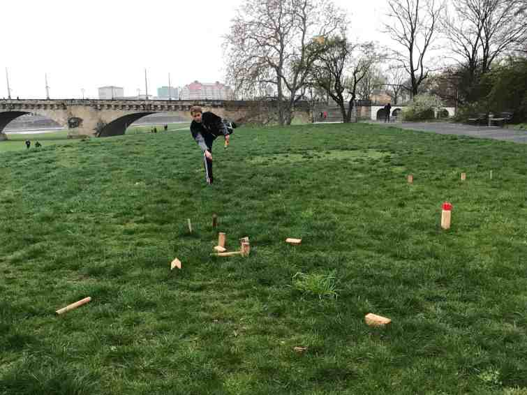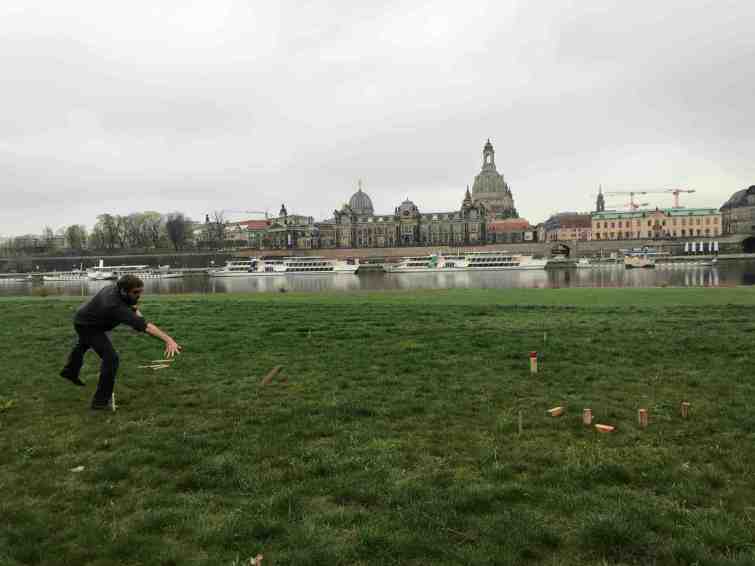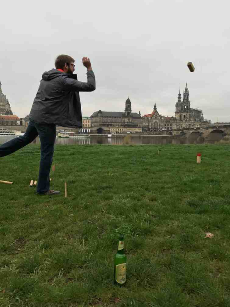 In my time following kubb online, I became aware of how it has grown out of Sweden into mainland Europe. I knew there were at least a few teams in Germany, so I started asking around to see if anyone had a contact there. After a few “talk to this person” leads, I was able to connect on Facebook with a handful of German kubb players. I sent my itinerary and got some responses from players in both Dresden and Berlin. I was so excited!